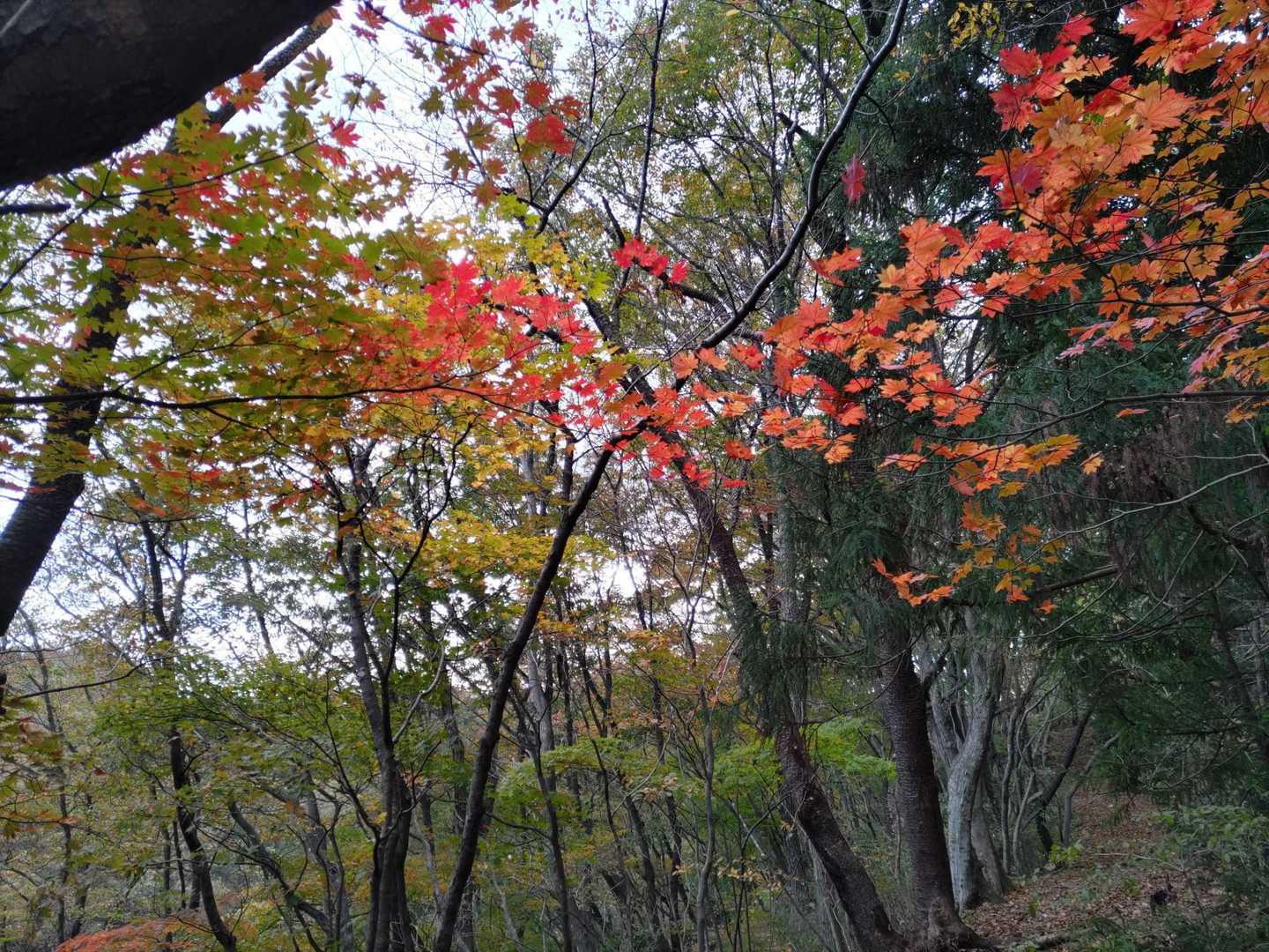 自宅から約30分の里山 七ツ森を登る、辛うじて紅葉が楽しめて満足の一日だった。